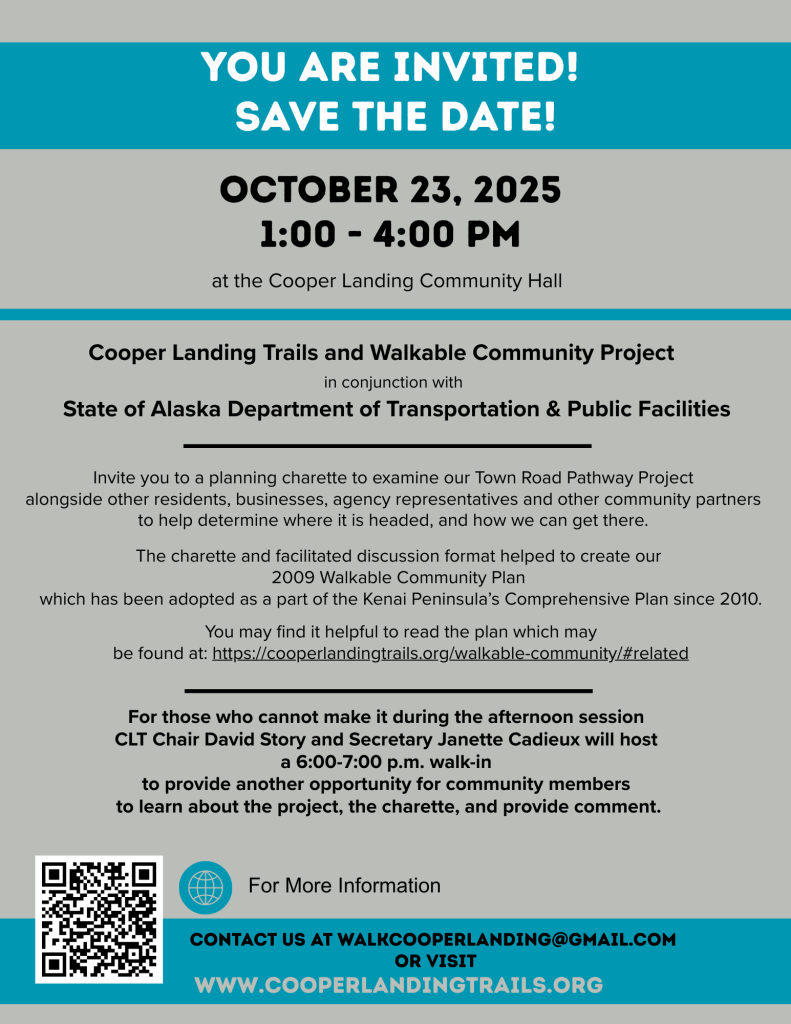 Volleyball on Thursdays at 6:00pm at the Cooper Landing School gymnasium.