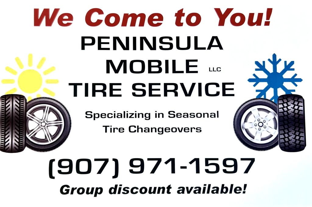Have your tires swapped over, either a complete mounting and balancing, or just have your summer set put on. Daniel will be in Cooper Landing with his mobile shop on Monday the 13th and possibly the 14th if enough folks sign up. Super convenient and professional with years of experience! Make your appointment by calling (907)971-1597